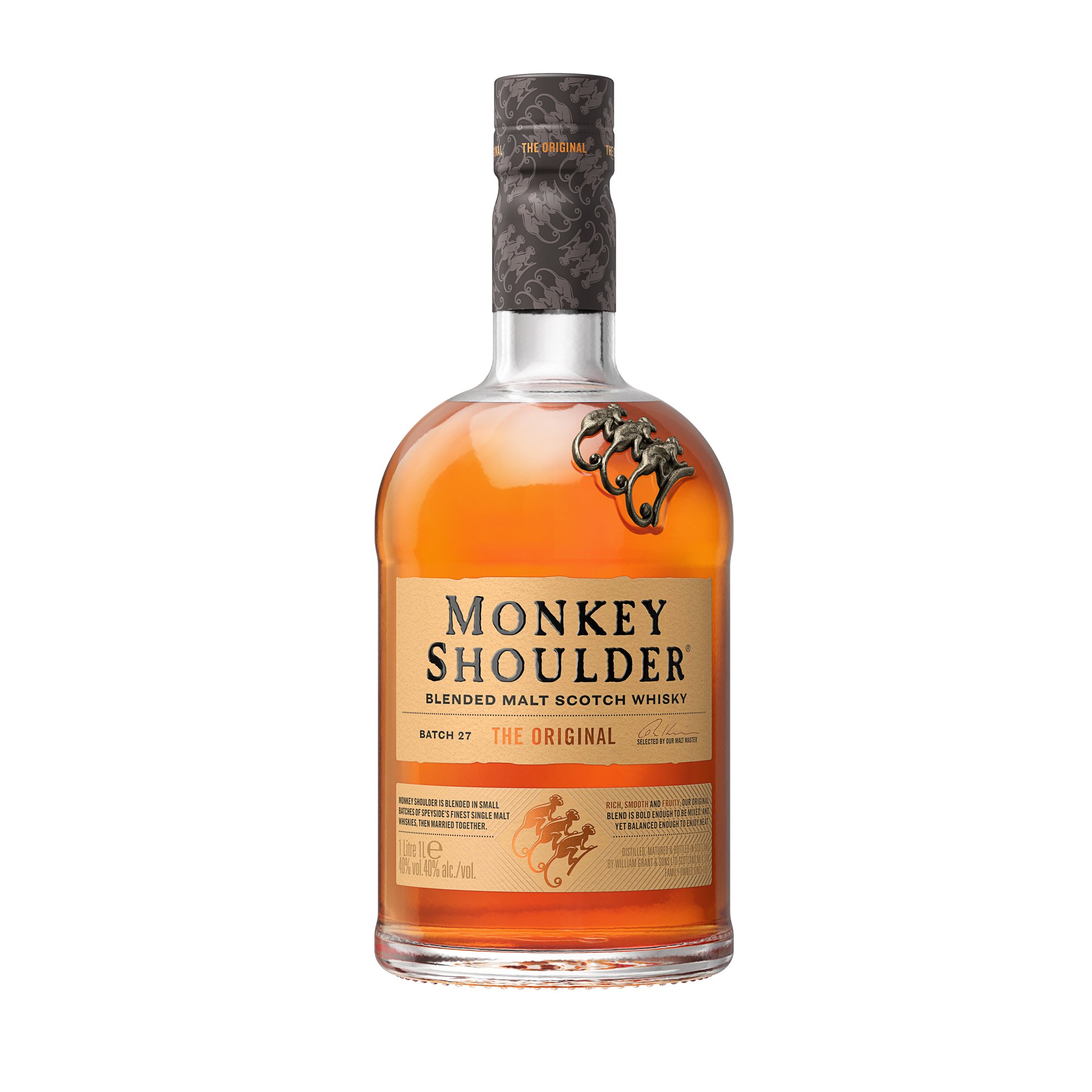 Шинэ төрлийн вискинд дурлагсдад зориулсан, шинэ хэв маягийн вискиг танилцуулж байна — энэ бол Monkey Shoulder. Энэхүү виски нь бидний уламжлалт аргаар арвайг гараар эргүүлэн хатаадаг “Malt men” буюу мэргэжилтнүүдийн ур чадвараар бүтсэн юм. Speyside бүсийн гурван шилдэг single malt вискиг, анхны удаагийн bourbon торхонд амрааж, цэвэр 27 торхны хольцыг Мalt Master Брайан Кинсман сонгож, бүрэн гүйцэд хольж найруулдаг. Monkey Shoulder нь уламжлалт blend вискинээс ялгаатай — ганц ч дусал grain виски агуулаагүй, 100% цэвэр malt виски-ээр хийгдсэн. Үүний үр дүнд онцгой, дээд зэргийн бүтээл бий болдог.