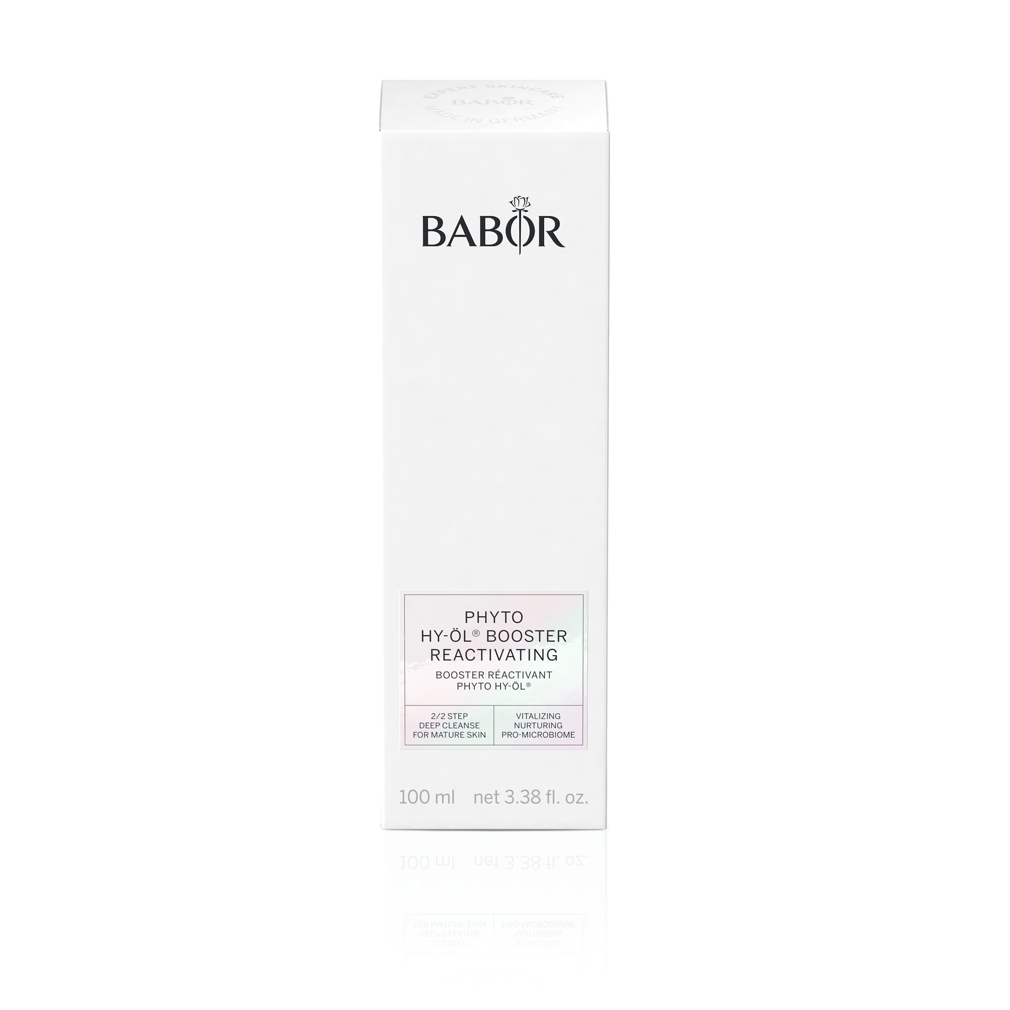Ургамлын гаралтай эссенс нь арьсыг залуужуулахад зориулсан BABOR HY-ÖL® хоёр үе шаттай цэвэрлэгээний арьс арчилгааны нэмэлт бүтээгдэхүүн юм. Цэвэрлэгээний явц нь арьсны хамгаалалтын бүрхүүлийг гэмтээлгүй, микробиомын тэнцвэрийг хадгалахад дэмжлэг үзүүлнэ. Цагаан цай, хүн орхоодой болон гинкго билоба ургамлын ханд нь арьсыг сэргээж, моринга үрийн уургийн ханд нь орчны сөрөг нөлөөнөөс хамгаална. Үр дүн: гүн цэвэрлэгдэж, тэнцвэртэй, ягаан өнгө орсон эрүүл арьс.