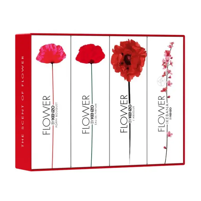 Энэхүү сетэд дараах сүрчигнүүд багтсан байна: FLOWER BY KENZO Eau de Parfum (эмэгтэй, 4 мл) , FLOWER BY KENZO POPPY BOUQUET Eau de Parfum (эмэгтэй, 4 мл), FLOWER BY KENZO L’ABSOLUE Eau de Parfum (эмэгтэй, 4 мл), FLOWER IKEBANA BY KENZO Eau de Parfum (эмэгтэй, 4 мл) Энэхүү цуглуулга нь FLOWER BY KENZO сүрчигнүүдийн олон талт, өвөрмөц мэдрэмжүүдийг нэг дор тансаг байдлаар танилцуулж байна.