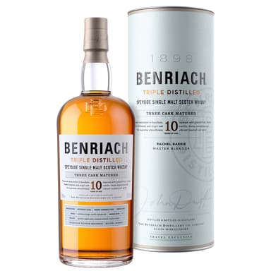 BenRiach Triple Distilled 10 жилийн настай виски нь уламжлалт BenRiach-аас илүү жимслэг, цэцэгсийн шинжтэй байх үүднээс гурав дахь удаагаа нэрэгддэг онцгой спиртээр бүтээгддэг. Speyside бүсийн энэ ховор single malt нь анх удаагийн Америк bourbon торхонд 10 жил боловсруулж , ваниль ба халуун ногооны тэнцвэртэй аялгууг бий болгодог. Мөн анхны удаагийн Pedro Ximénez шэрригийн торх нь энэхүү вискинд нарийн амт оруулж, хамгийн зөөлөн, баялаг бүтэцтэй BenRiach болгодог. Энэ бол гурван удаа нэрэгдсэн, тансаг боловсруулалттай, жинхэнэ мэдрэмжийг илтгэх нэгэн бүтээл юм.