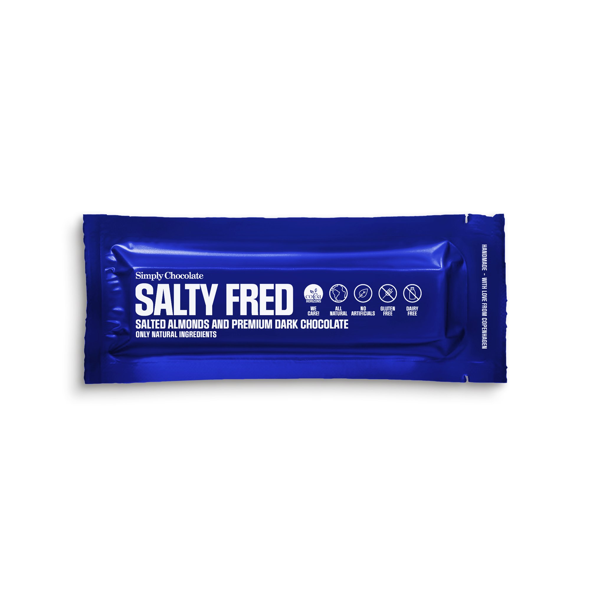 Гар аргаар хийсэн Данийн шоколад. Simply Chocolate цувралын баарнууд нь байгалийн хамгийн шилдэг орцуудаар амтлагдсан амттай баарнууд юм. Дээд зэргийн чанартай шоколад бөгөөд ямар ч хиймэл нэмэлт бодис агуулаагүй. 60% хар шоколад, дээд зэргийн чанараараа алдартай давсалсан бүйлсээр хийгдсэн. Давслаг амт болон жимсний шоколад нь үүнийг хамгийн шилдэг хослол болгож өгдөг.