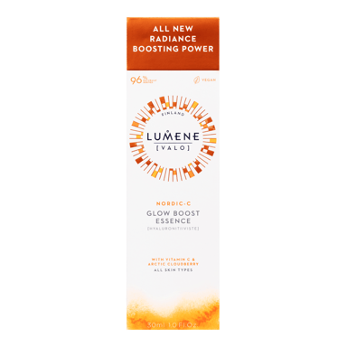 Хамгийн их борлуулагддаг LUMENE Nordic-C [Valo] Glow Boost Essence нь арьсыг эрчимтэй гэрэлтүүлж, гүн чийгшүүлэх үйлчилгээтэй болох нь клиникийн туршилтаар батлагдсан*. Энэхүү гайхамшигт серум нь антиоксидантаар баялаг зэрлэг Арктикийн үүлэн жимс болон витамин С-ийн өвөрмөц хослолоор баяжуулсан. Одоо найрлага нь гурван төрлийн гиалуроны хүчил болон поли-глутамины хүчлээр улам сайжирч, арьсанд дээд зэргийн гэрэлтсэн, эрч хүчтэй төрхийг бий болгоно. Веган. *Клиникийн мэргэжлийн үнэлгээ, n=28, 4 долоо хоног.